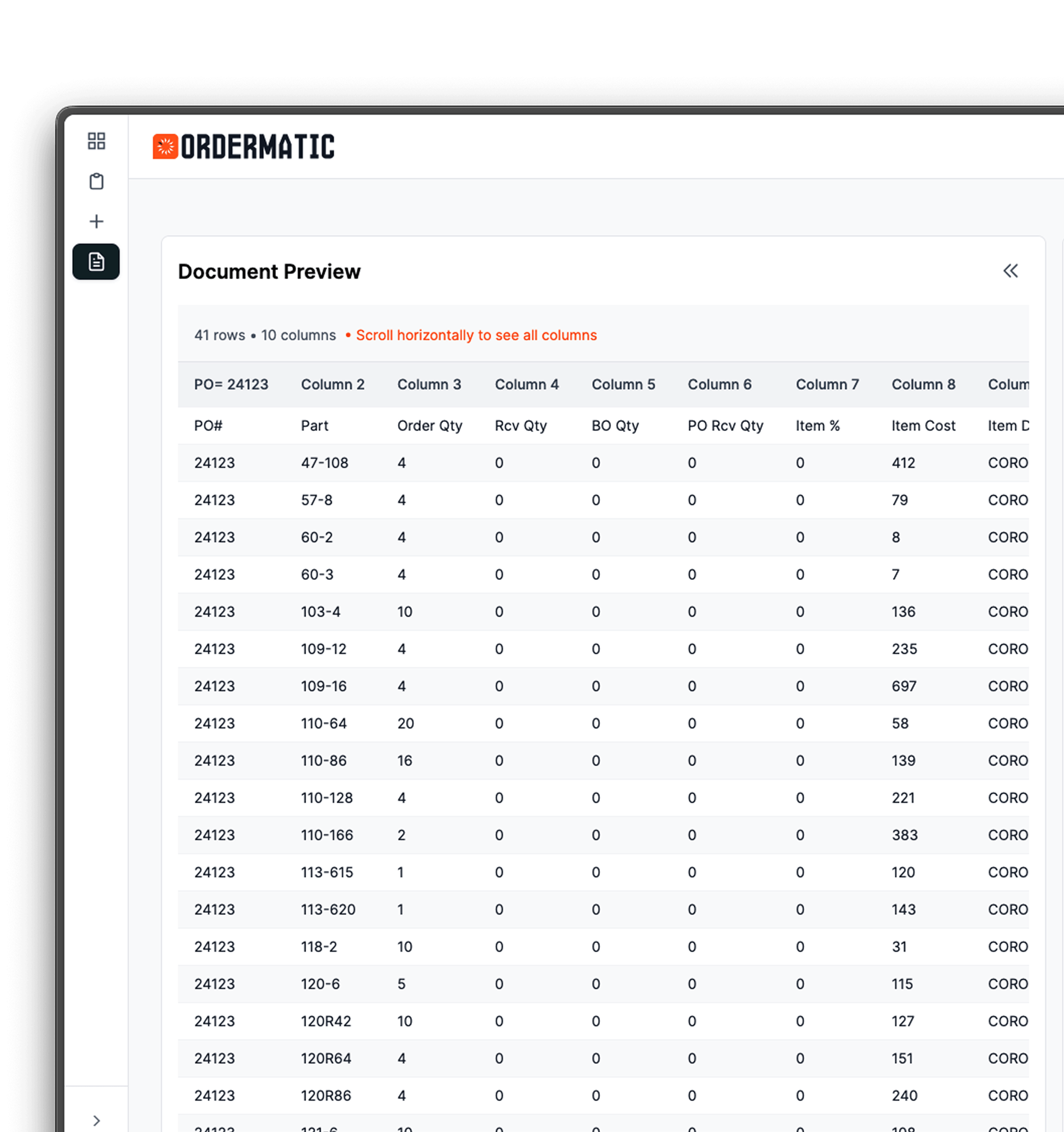 Ordermatic reads fields of customer info, items, quantities, pricing and more.