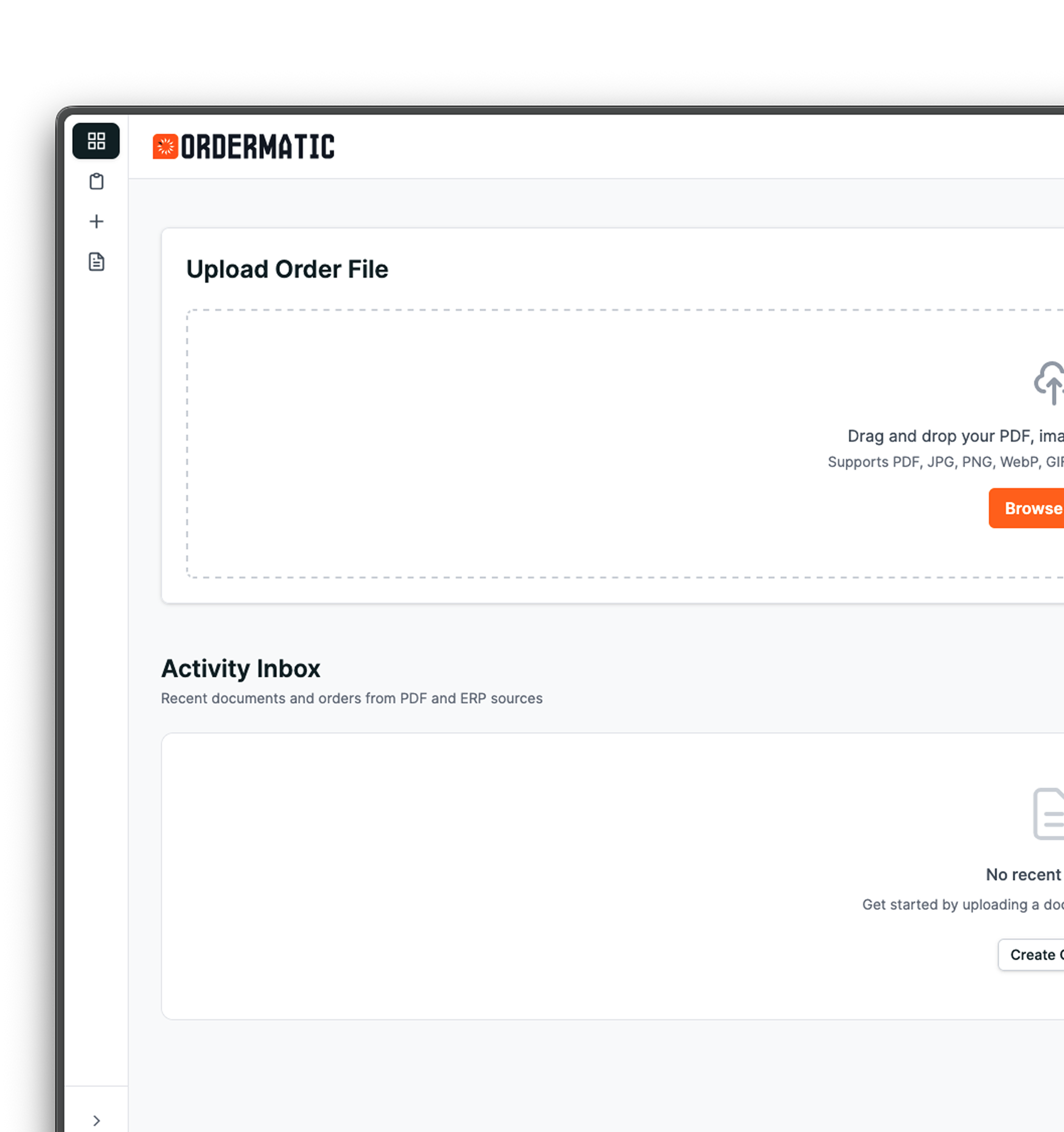 Orders come in from emails, calls, handwritten notes, PDFs, etc. and you just drop into the box. No formatting, no templates, no special handling required. If your team can receive it, Ordermatic can capture it.